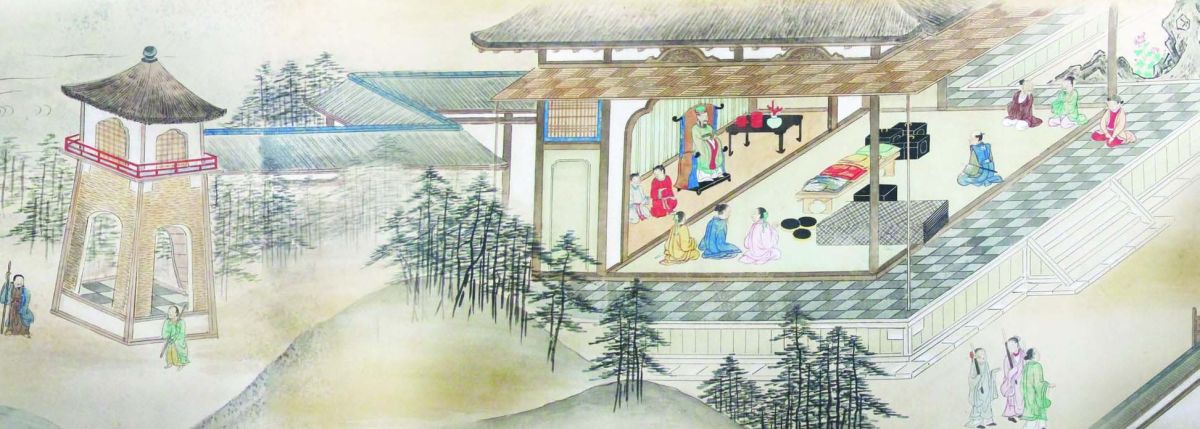 1 phần bức họa Châu ấn thuyền Giao Chỉ độ hàng đồ quyển diễn tả cảnh Chúa Nguyễn tiếp thương gia Nhật Bản.