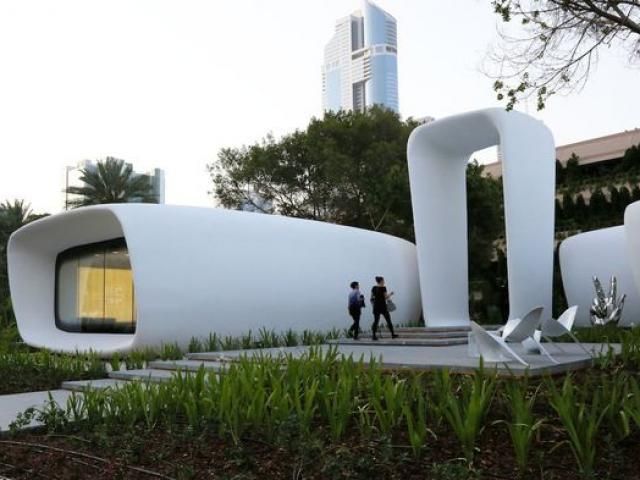 Một tòa nhà ở Đu-bai (Các tiểu vương quốc A-Rập thống nhất) được xây dựng bởi máy in 3D