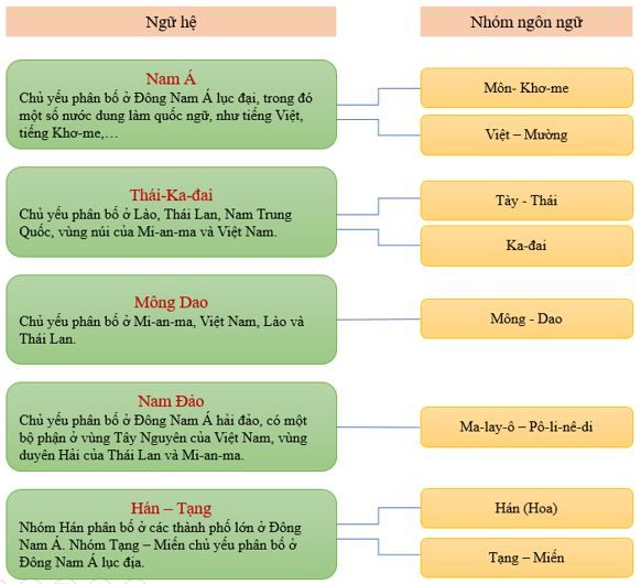 Sơ đồ các ngữ hệ và nhóm ngôn ngữ ngày nay ở Đông Nam Á