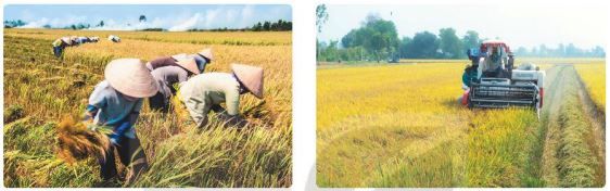 Thu hoạch lúa nước của người Kinh (thủ công và cơ giới)